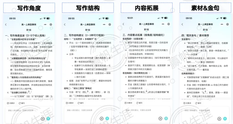 除综评文书外,“墨核伴学”进一步构建多元写作矩阵,将AI辅助延伸至学生课外生活的各个方面。