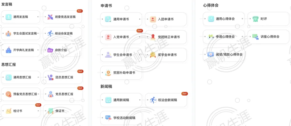 从入团申请书到发言稿、演讲稿等,我们提供多种正式文体的专业写作支持。与通用AI工具不同,墨核深谙校园场景的实际需求,不仅协助完成文本,更注重培养学生在不同场合下的表达规范与思想深度,确保每一篇文稿都贴合身份、符合场合,为学生的综合素质展现提供有力支撑。