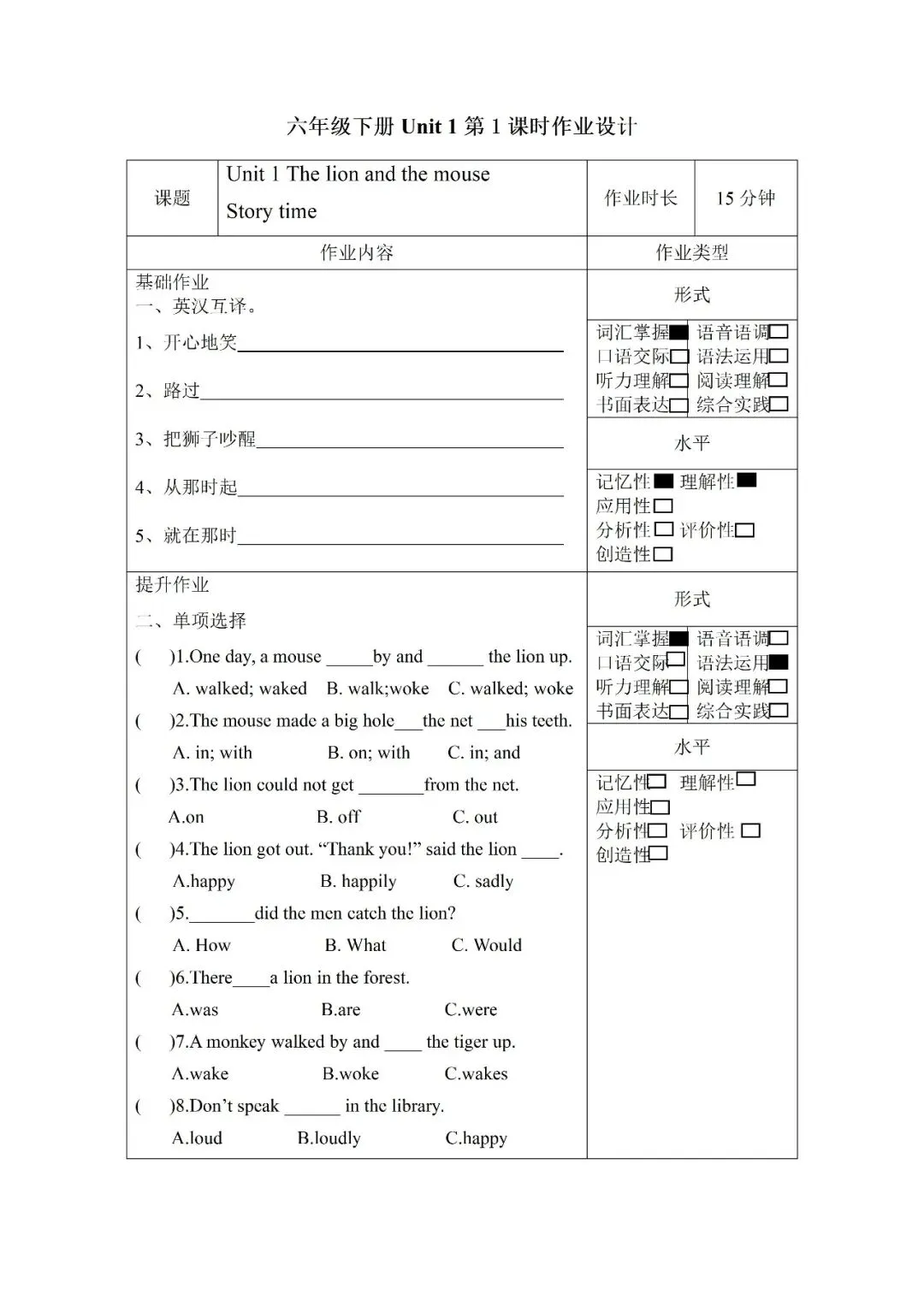 【英语练习】2026春六年级下册英语译林版全册分层练习 (电子版可打印)