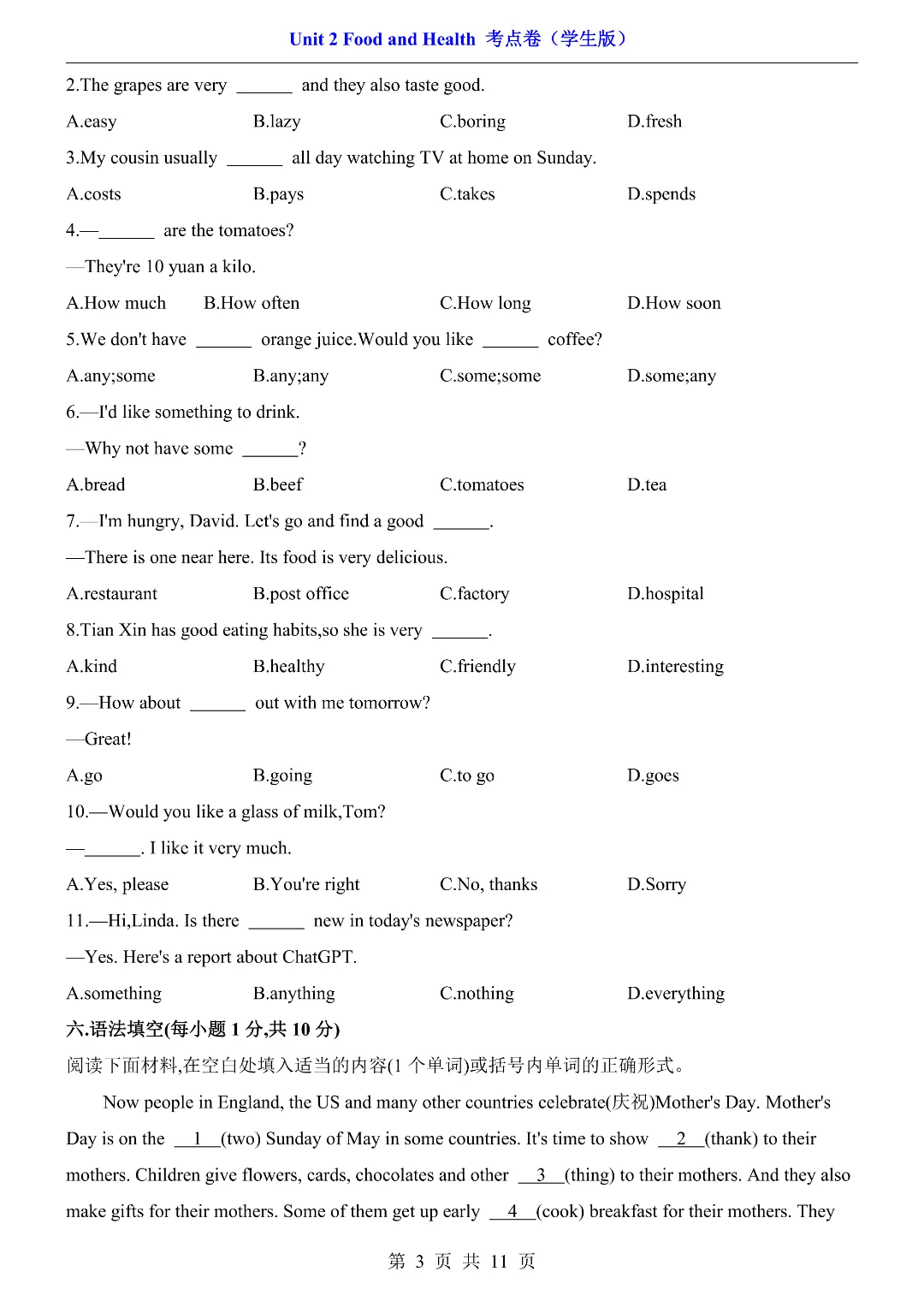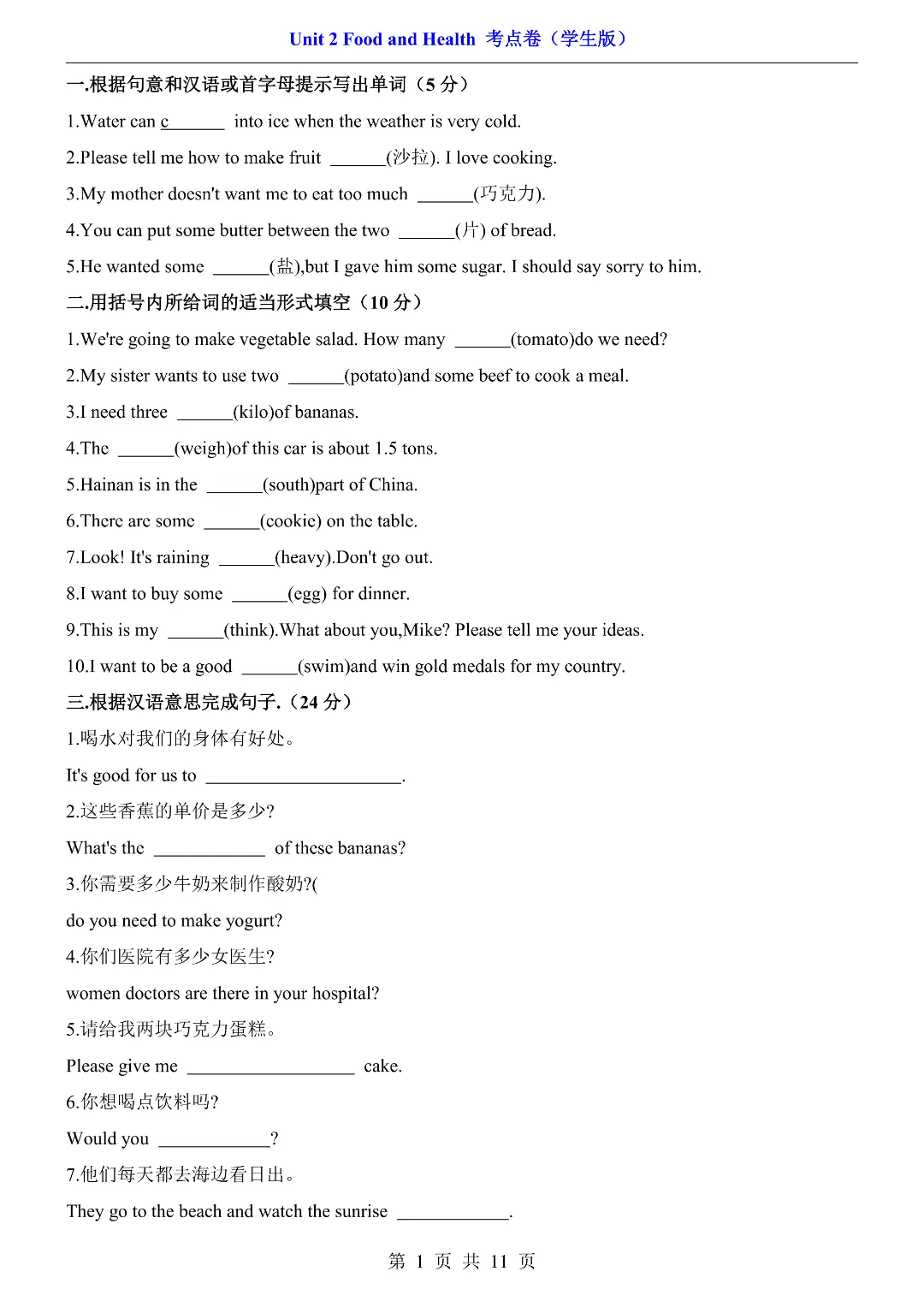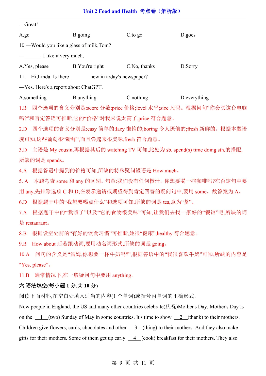 今日给家长朋友们分享的是:2026年春北师大版七年级初中下册英语《第二单元考点测试卷》附答案‖电子版可打印