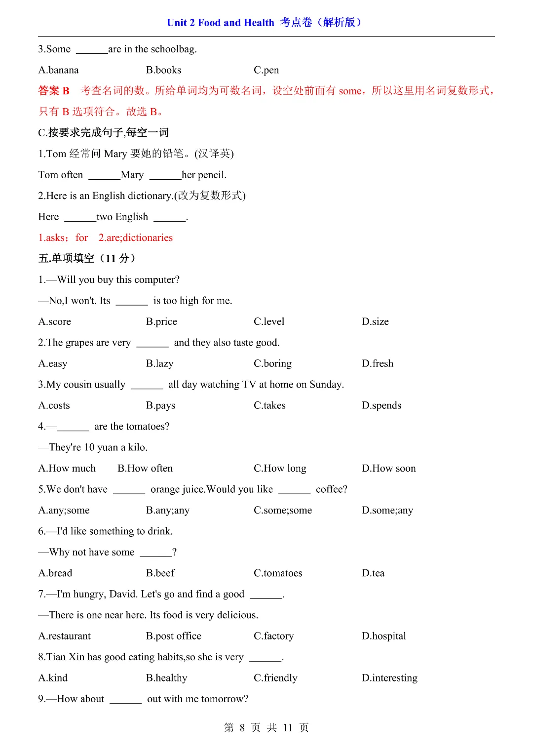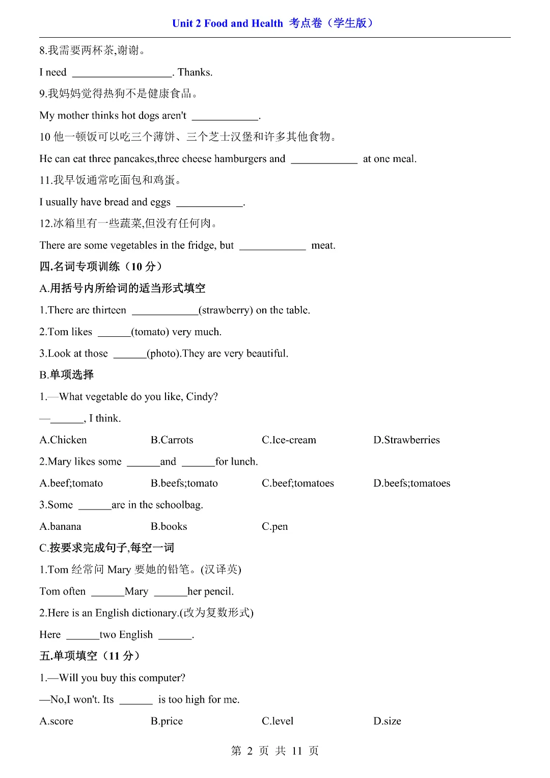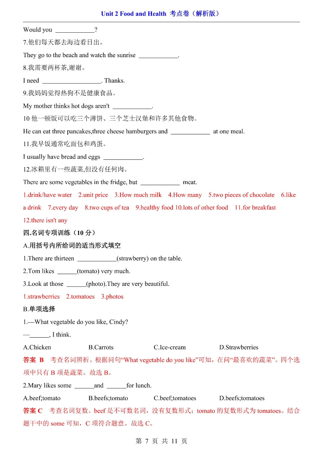 2026年春北师大版七年级初中下册英语《第二单元考点测试卷》附答案‖可打印