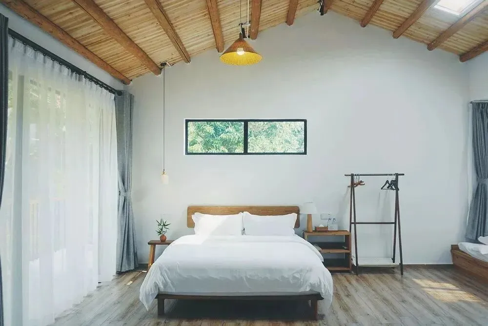 菁木山舍的室内装修,以自然原木色为核心基调,秉持“做减法”的设计理念,刻意摒弃了繁琐多余的装潢,每一处细节都简约而纯粹,尽显自然本真之美。