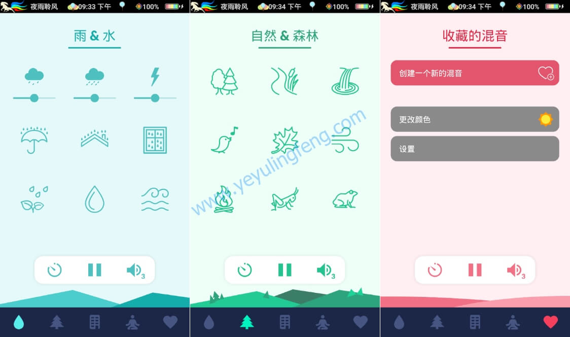 通过听自然的声音、降雨和鸣禽的鸣叫,可以放松治愈心情,由于这个程序也包含白噪声,它也可以用于工作和学习过程中增加浓度让你更加专注,有了白噪音为您播放带有缓解压力、安神养性的自然声音,还能分散噪音,减轻杂音的干扰,和大自然一起平静身心,让你在专注、冥想中全身心放松自己,促使快速进入睡眠状态,睡得更好!