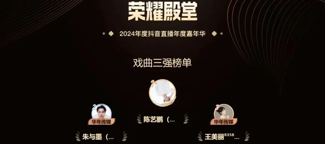 2023年华东八强公会,第一届抖音梨园赛冠季军,第二届梨园赛冠亚季殿军,中国华彩杯冠亚军,抖音戏曲文化艺术节,抖音戏语风华夜晚会。