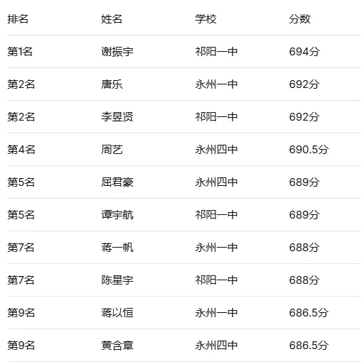 全市前10名中,祁阳一中独占4席(第1、第2并列、第5并列、第7并列),并包揽全市第1名!高分段实力可见一斑。