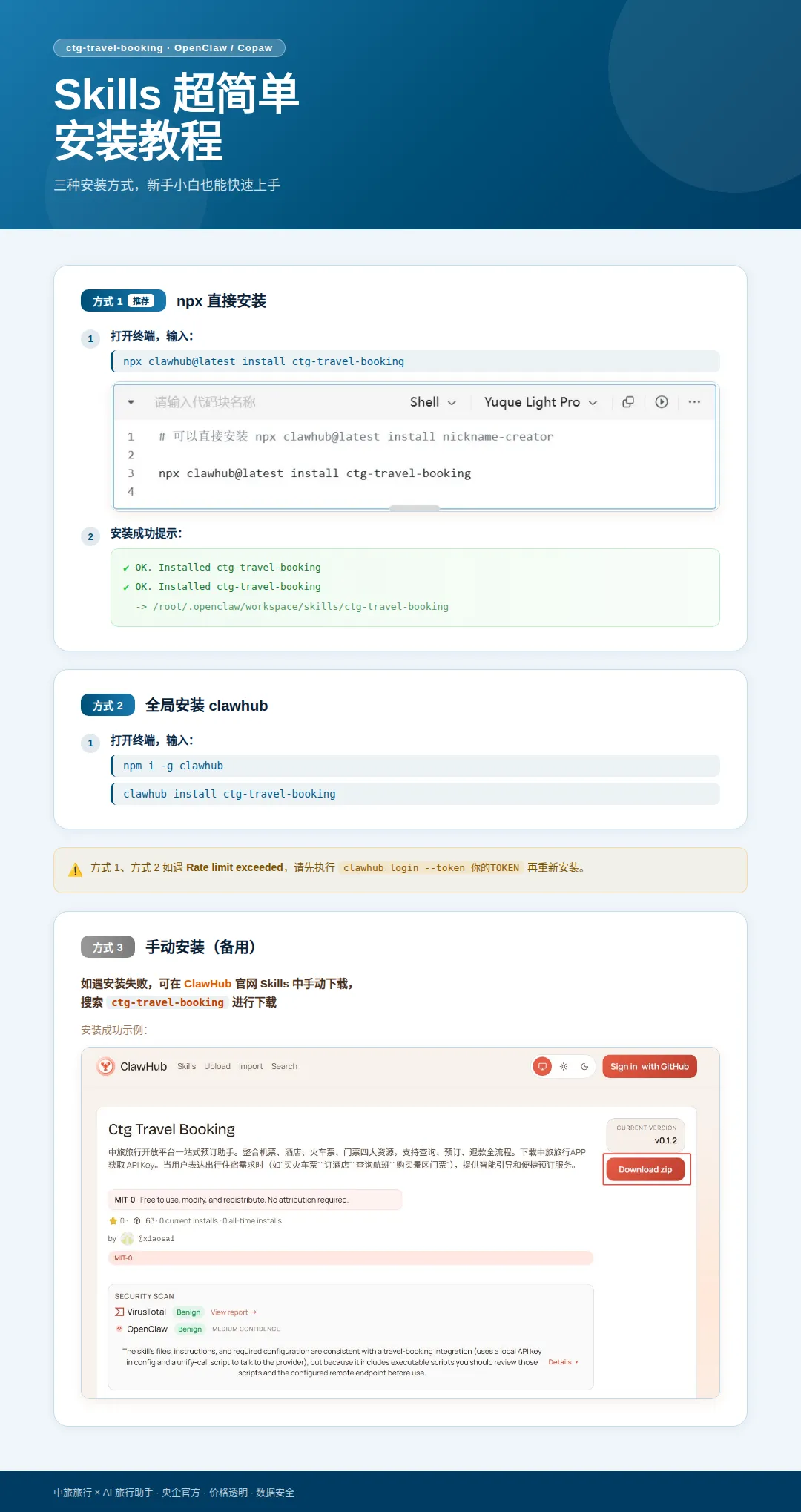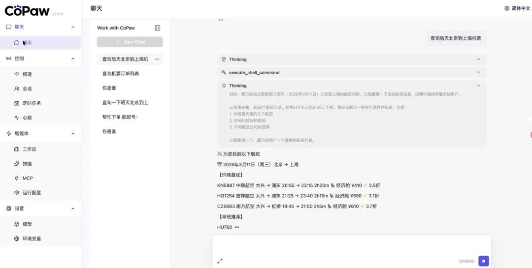 此次接入OpenClaw和CoPaw,我们不仅把“黑科技”请进了家门,更把ctg-travel-booking Skills(中旅旅行预订技能)打磨得炉火纯青,它可以帮你: