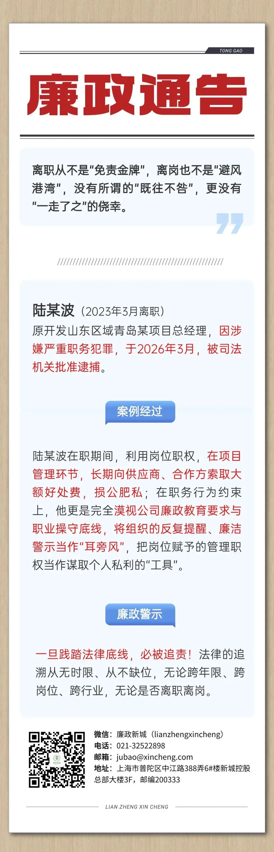新城控股发布廉政通告,离职不等于“免责金牌”