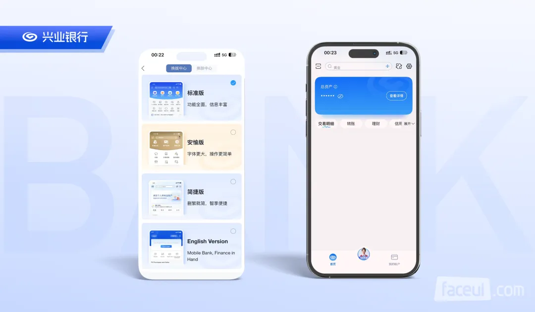 为突破传统大而全App的设计瓶颈,这六家银行普遍上线了“标准版本”、“长辈版”与“英文版”,实现了基础的适老化与国际化。在此基础上,各银行在版本细分上进行了深度的体验创新,改变了用户操作、交互和感知金融服务的方式。