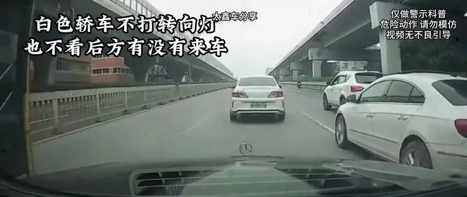 还有:“白色轿车突然不打转向灯随意变道,与后方车辆发生剐蹭,但未停车,继续行驶。”