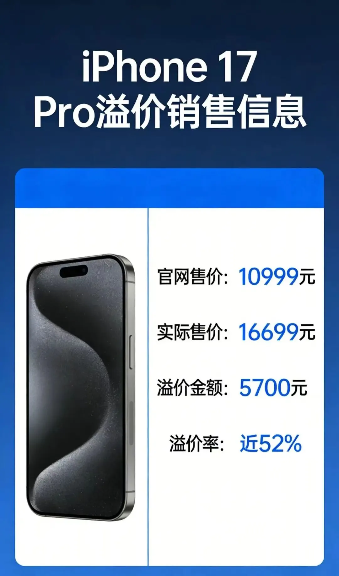 在闪XX,512GB的iPhone 17 Pro售价16699元,比官网高出5700元,溢价近52%。