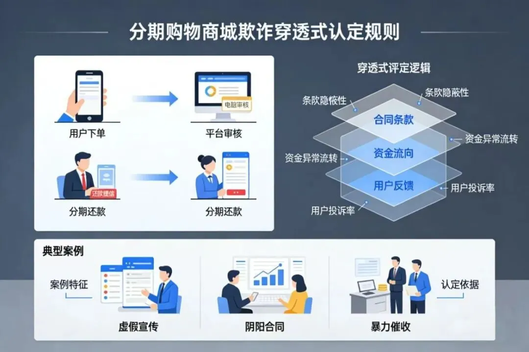 深圳互联网法院在金XXX案例中明确指出:“分期购物商城”这种诱导用户进行资金借贷的交易属于欺诈行为,“穿透式认定规则” 适用于商城链条上所有参与主体,虽分工不同,但因共同完成交易闭环,故均需对消费者承担整体性责任,连带赔偿。