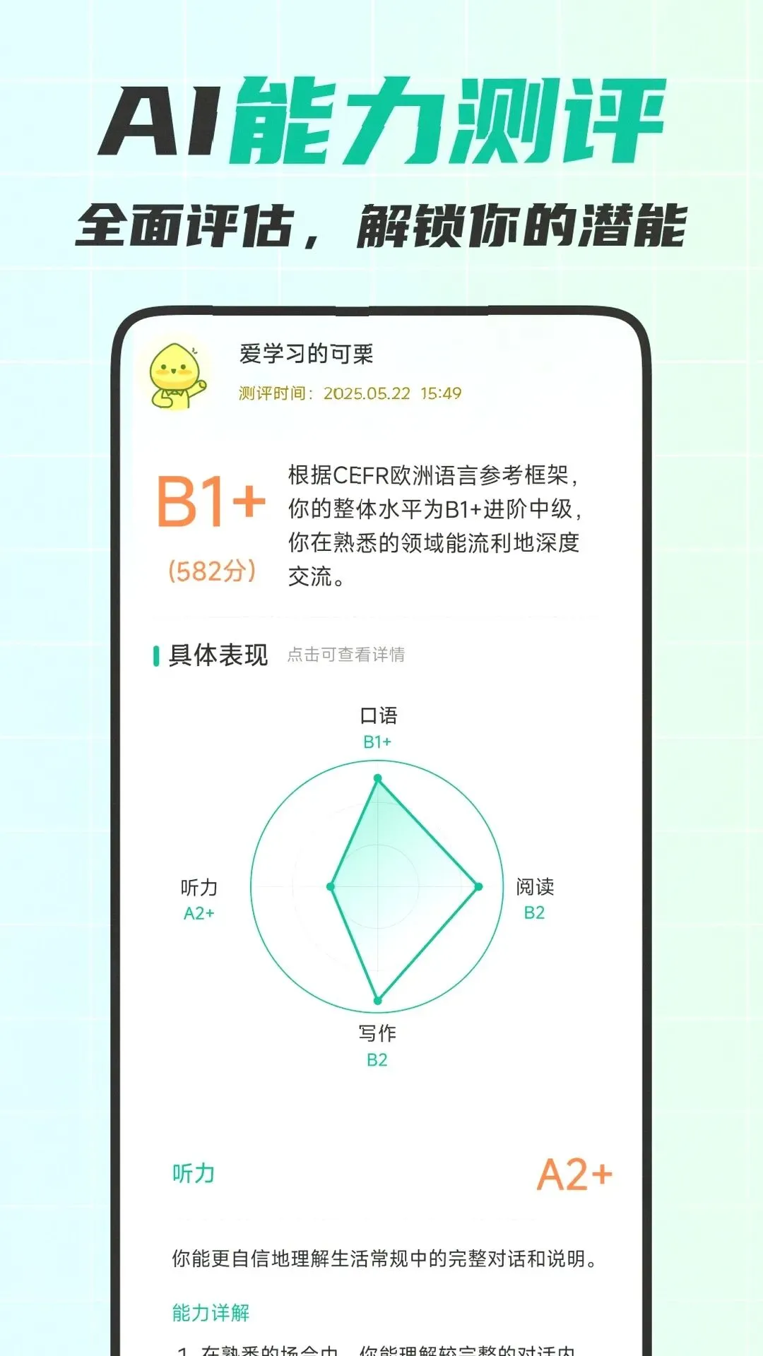 因为场景匹配度极高、提分效率快、性价比远高于真人一对一辅导,可栗口语的综合评分: