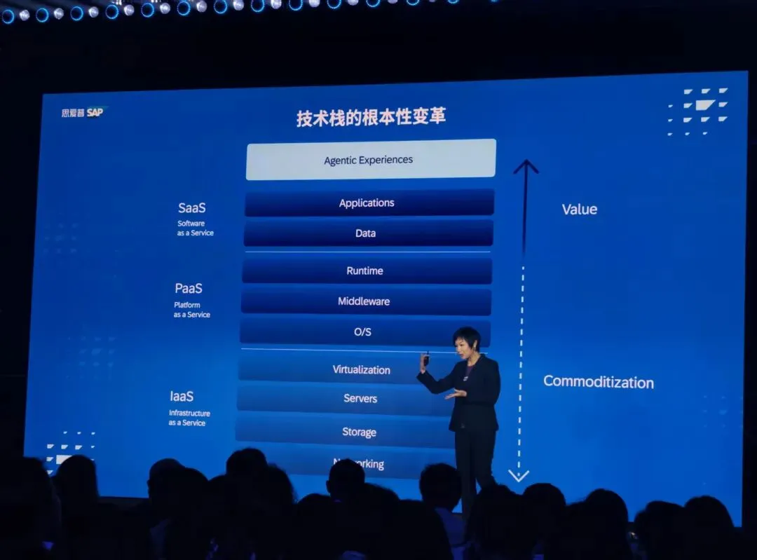 SAP大中华区总裁原欣在一场全球运营高峰论坛上表示,“一个明显趋势是,技术堆栈正在逐层商品化。”