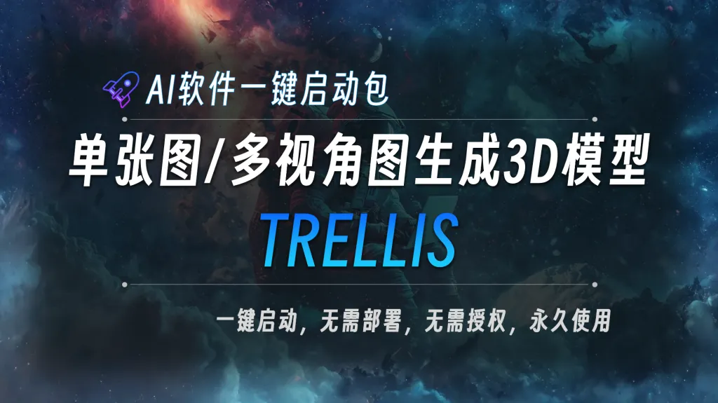 02、AI软件一键启动包,单张图/多视角图生成3D模型TRELLIS一键启动,无需部署,无需授权,永久使用