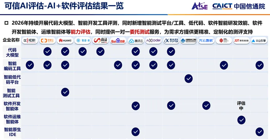 为进一步规范行业技术能力,推动产业健康有序发展,一方面为产品方提供能力建设指导,助力能力提升;另一方面为应用方提供产品选型参考,加速智能化能力落地应用,中国信通院正式开展2026年首批AI+软件系列评估工作。