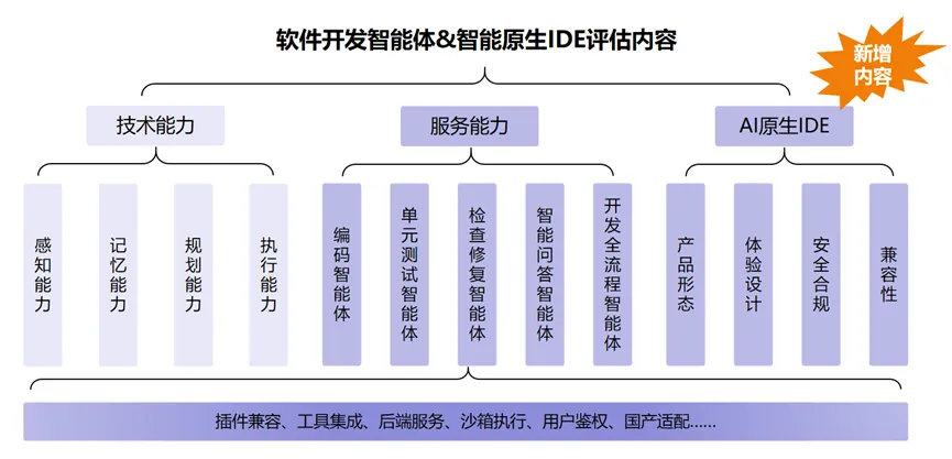 本评估以《面向软件工程智能体的技术和应用要求 第1部分:开发智能体》标准为依据,基于技术能力、服务能力两大维度,从感知、记忆、智能编码、检查修复等角度,对软件开发智能体提出了全栈能力要求,并新增了AI原生IDE部分内容,可用于智能原生IDE产品的评估。