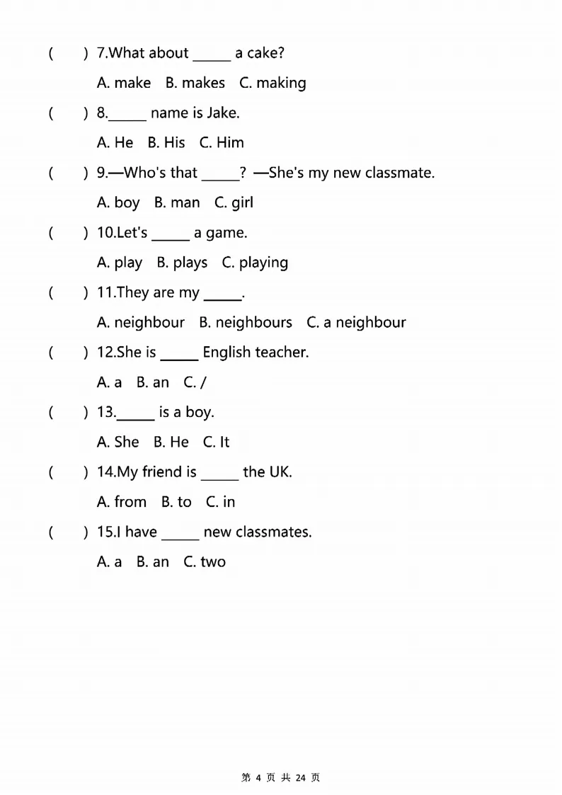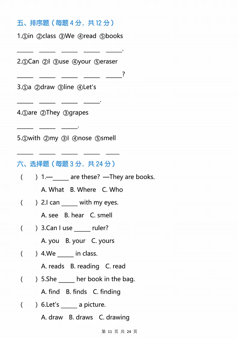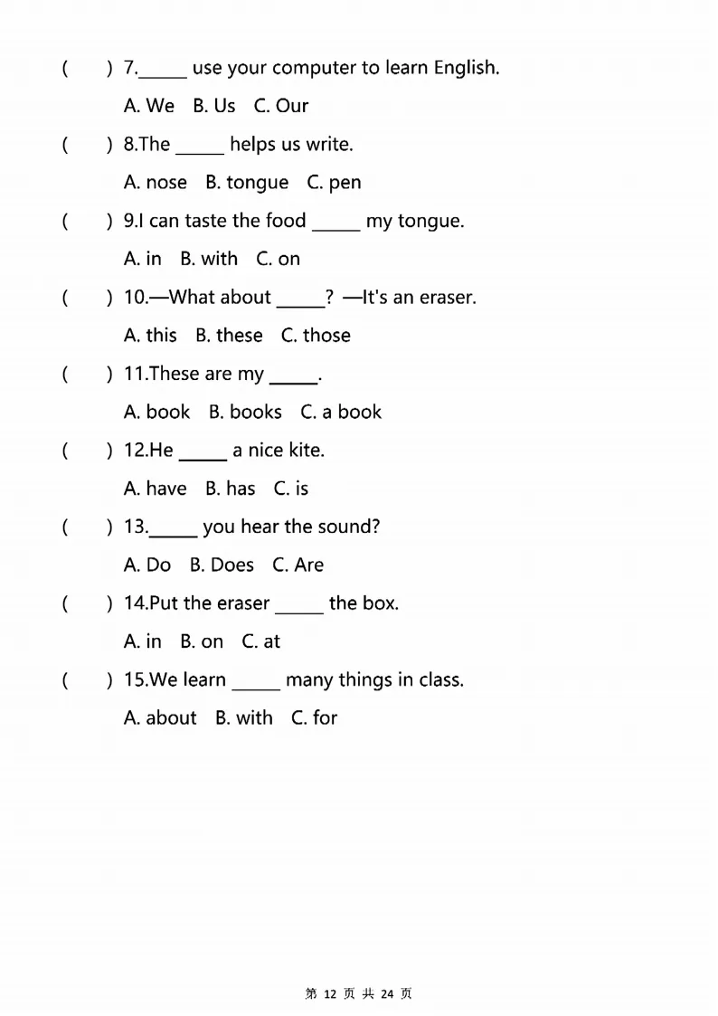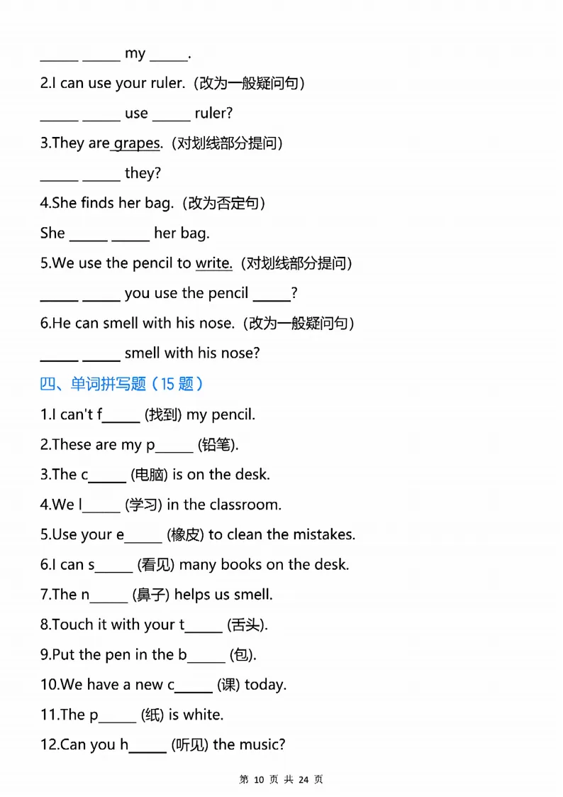 新版人教三下英语语法专项训练24页,电子版可打印 点击上方关注领取更多学习资源 新版人教三下英语语法专项训练24页,电子版可下载,同步教材每课内容。需要的家长抓紧打印出来,让孩子用起来。 (温馨提示:文末有完整电子版领取方式) 免费领取电版 关注公众号:“博学小课堂” 文章文末:点赞+再看 发送关键字:260320 说明 教辅在精不在多 ,如果觉得资料好,孩子需要正常使用 ,建议购买正版图书本公众号分享教辅资料,是为了给大家介绍、展示教辅资料的内容和特点,推荐大家购买正版教辅。 为了更好地展示资料的情况,我们可能会用到一些资料的截图、官方的样书,或者网络上公开的电子资料,如果权利人认为这些展示可能会侵害到您的权利,请直接告知我们,我们会立刻删除。