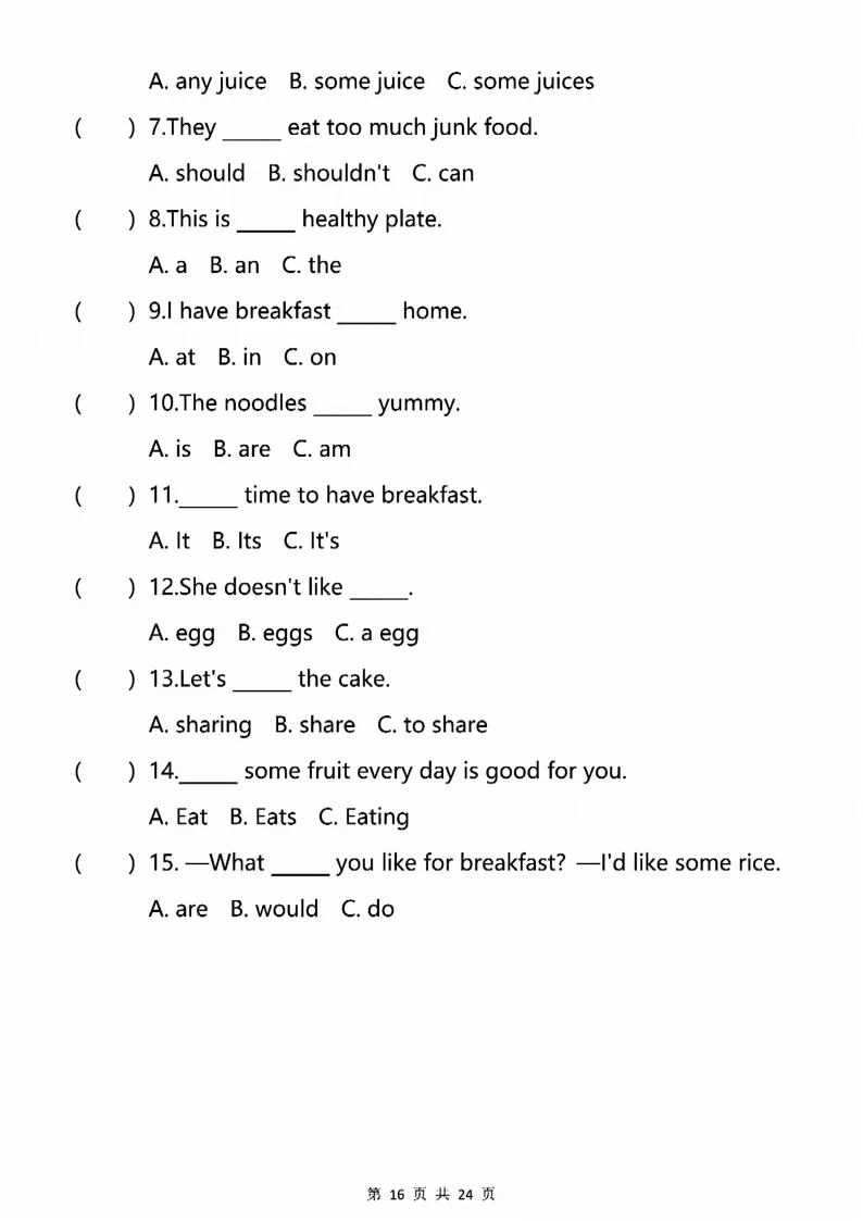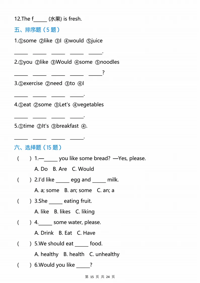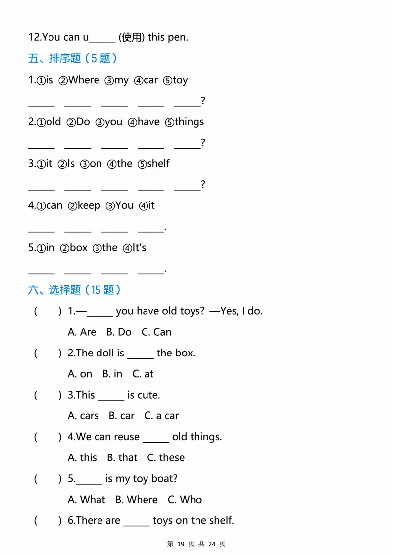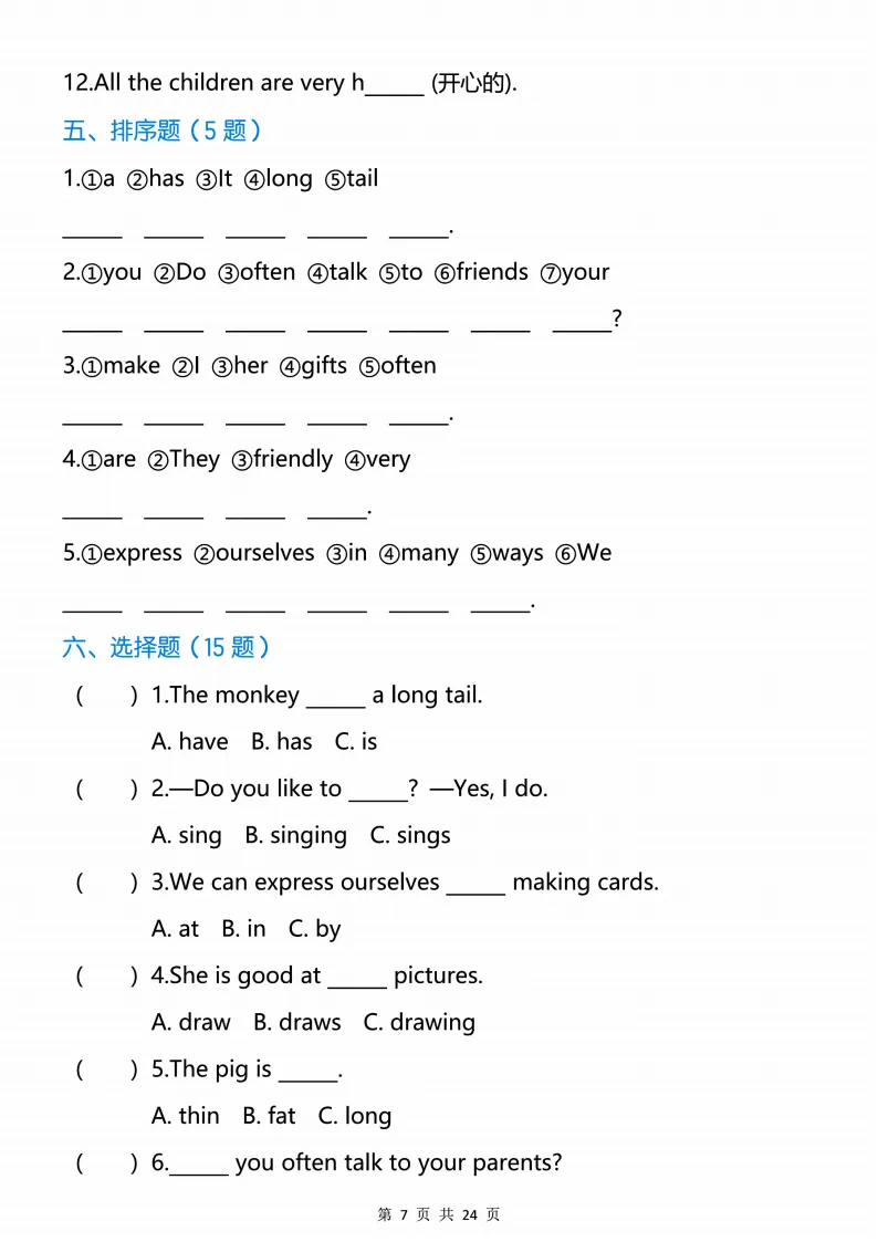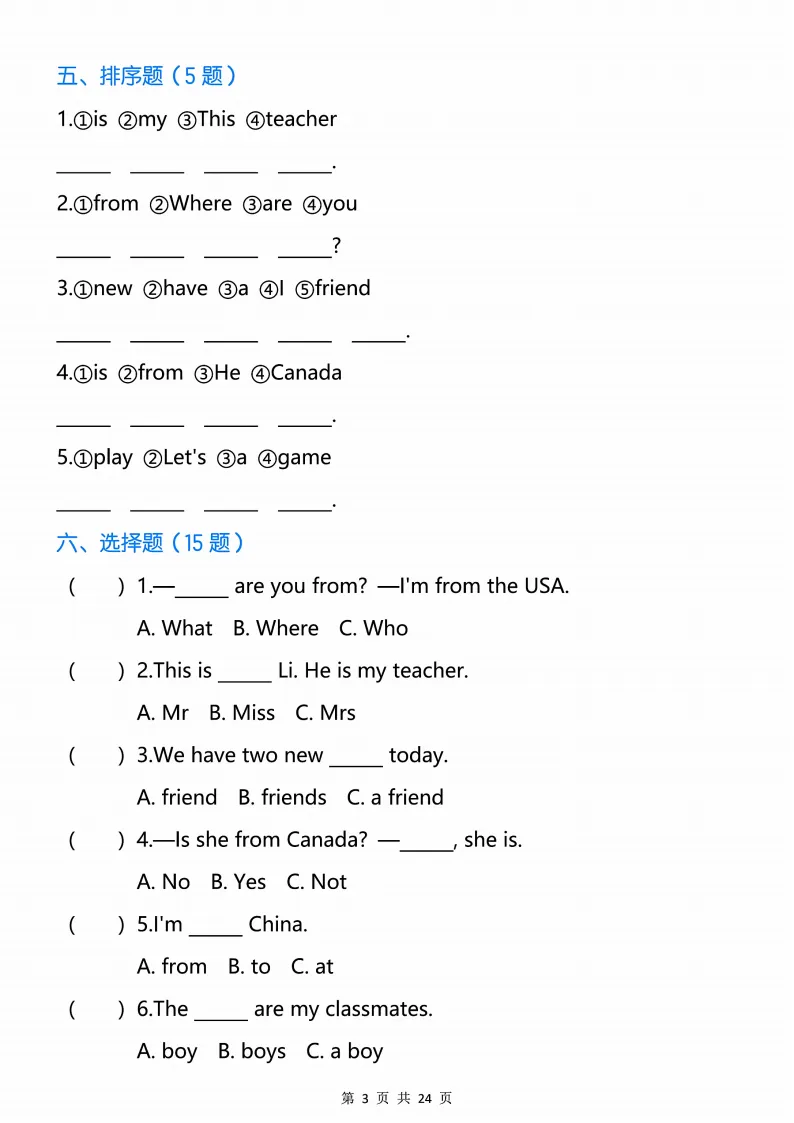 新版人教三下英语语法专项训练24页,电子版可打印 点击上方关注领取更多学习资源 新版人教三下英语语法专项训练24页,电子版可下载,同步教材每课内容。需要的家长抓紧打印出来,让孩子用起来。 (温馨提示:文末有完整电子版领取方式) 免费领取电版 关注公众号:“博学小课堂” 文章文末:点赞+再看 发送关键字:260320 说明 教辅在精不在多 ,如果觉得资料好,孩子需要正常使用 ,建议购买正版图书本公众号分享教辅资料,是为了给大家介绍、展示教辅资料的内容和特点,推荐大家购买正版教辅。 为了更好地展示资料的情况,我们可能会用到一些资料的截图、官方的样书,或者网络上公开的电子资料,如果权利人认为这些展示可能会侵害到您的权利,请直接告知我们,我们会立刻删除。