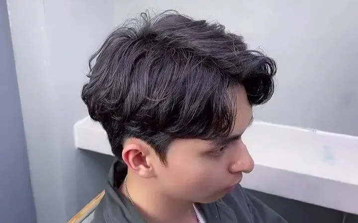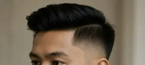 两侧从耳下低位置渐变推短,顶部头发向后梳理,保留自然蓬松,不油亮;适合职场通勤、轻熟男士;发蜡梳顺,适合西装或休闲正装。