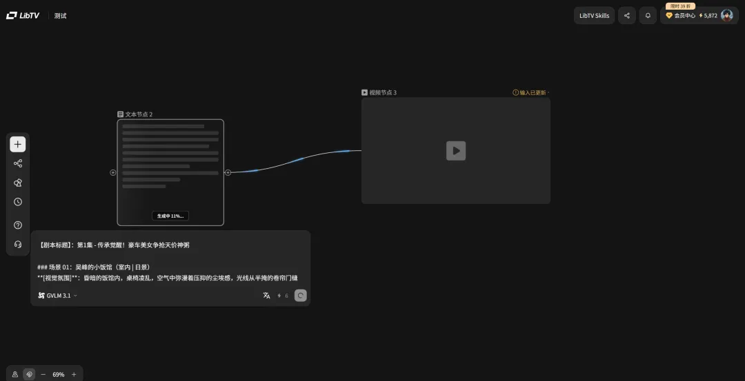 LibTV:它是顶级的“操作系统”。它把生成、编排、逻辑判定全都集成在了一块画布上,包含了市面上所有AI视频大模型。它解决的是“从 1 到 100”的工业化产出问题。