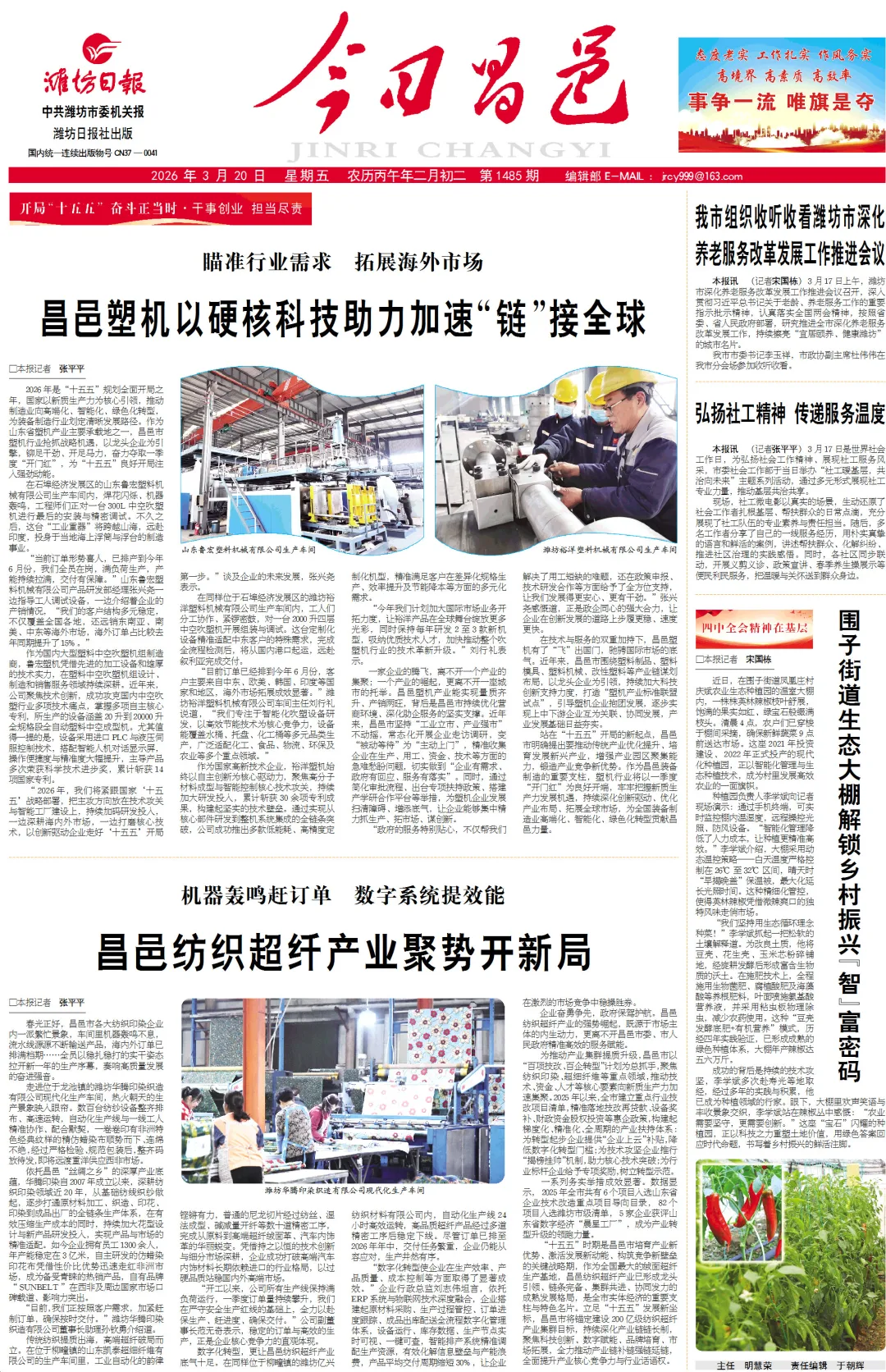 《今日昌邑》电子版来啦!| 聚焦昌邑塑机“链”接全球、纺织超纤聚势开局、春日盛宴文山民俗庙会等