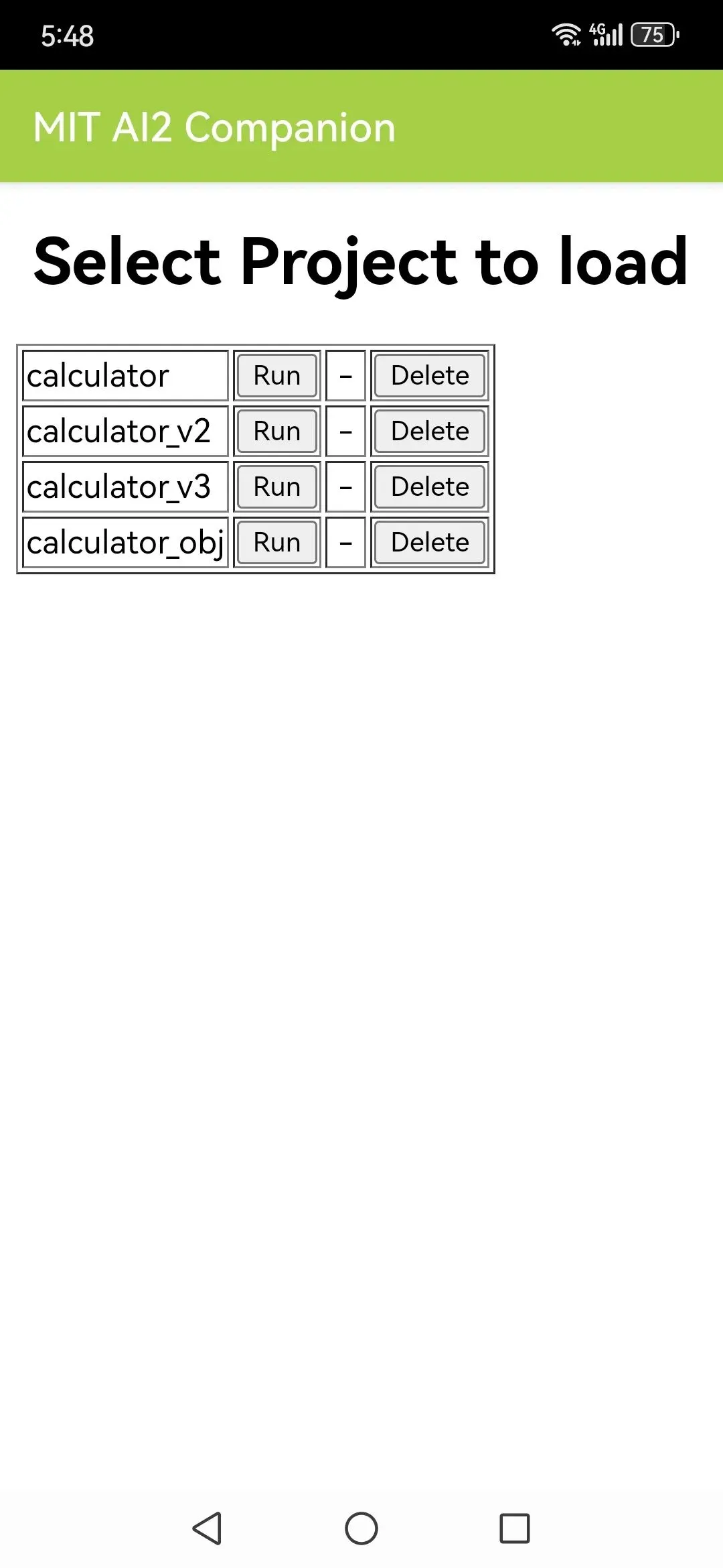 一直以来很少变化的AI伴侣,这次也增加了新的项目存取功能。它可以在扫码完成代码加载后,通过点击右上角的系统菜单,实现项目数据在手机本地的保存和加载。保存后的项目,还可以通过直接点击首页的my saved apps按钮,进行浏览、查看和运行。