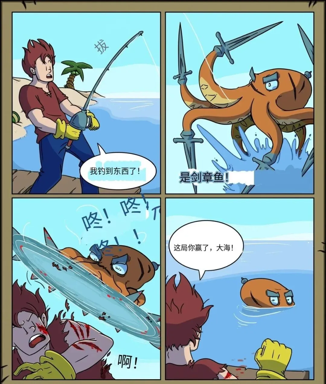 漫画梗图丨当你在海边钓鱼的时候,钓到了一只剑章鱼,会发生什么???