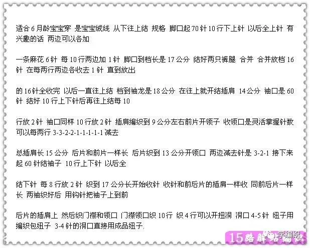 适合3-6个月宝宝穿的连体衣的织法说明