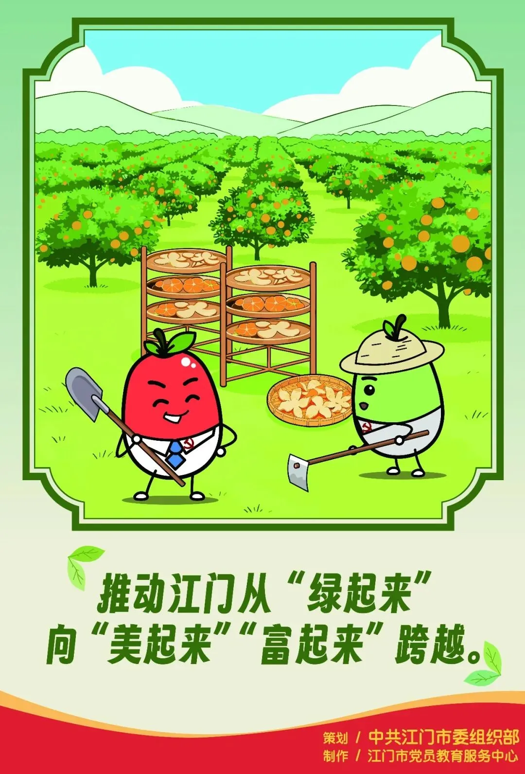 可爱的形象、生动的演绎,江门党建工作的“代言人”——“红枣”“青枣”又和您见面啦。本期“枣工”(“组工”一词的粤语发音)漫画推出一组绿美江门主题海报,欢迎大家下载使用,共同参与打造活力迸发、美轮美奂新江门!