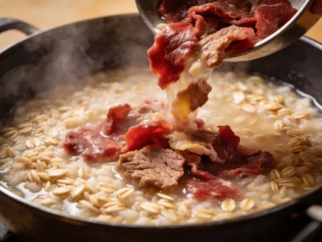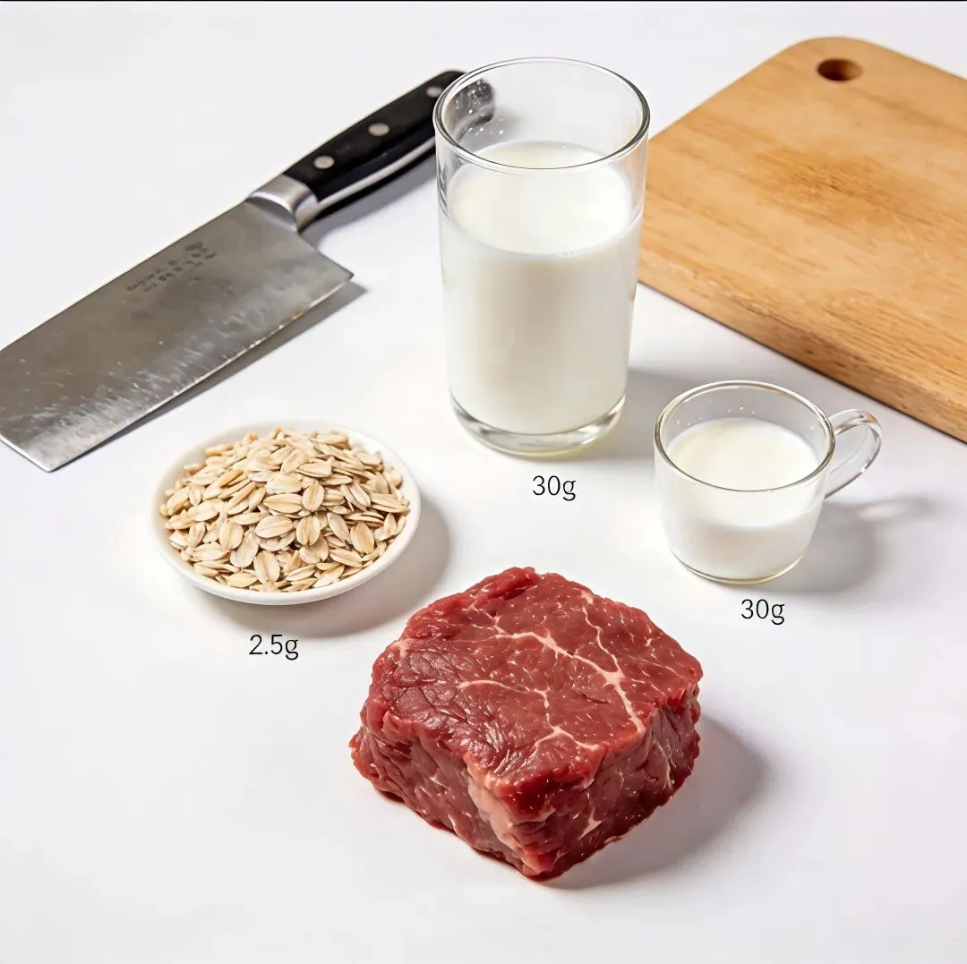 ✅ 正确姿势:薄片牛肉 + 糊状燕麦 + 适量牛奶 + 少量多次