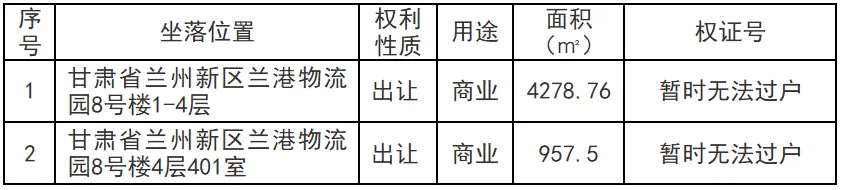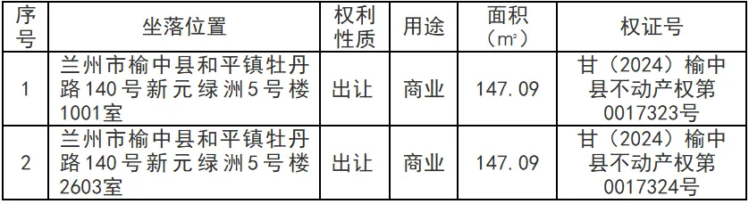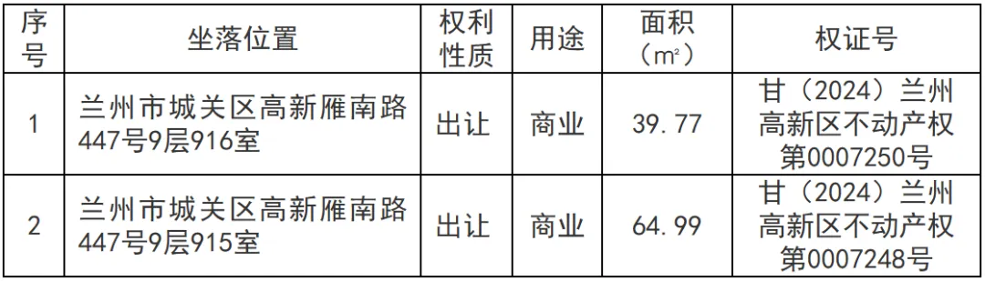 1.兰州市城关区高新雁南路447号9层2间商业用房转让项目