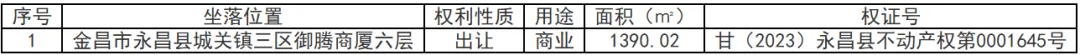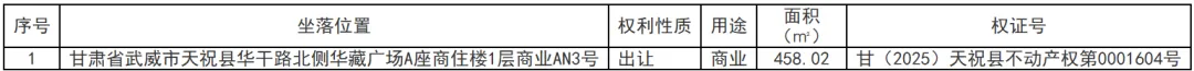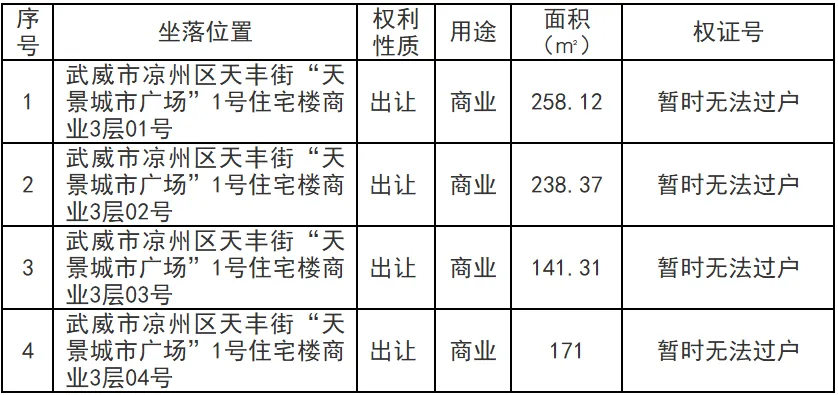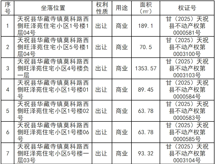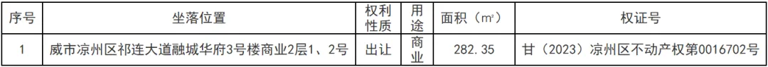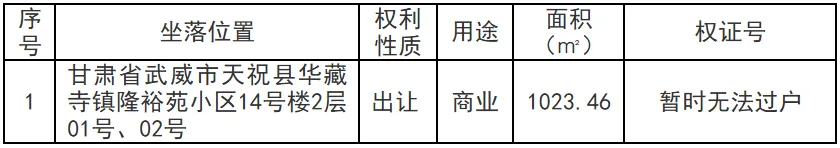 近日,甘肃天祝农村商业银行股份有限公司在甘交所集团发布了一批权属清晰、区位优质、用途多元的存量资产转让转让推介项目,今日推介目录如下:
