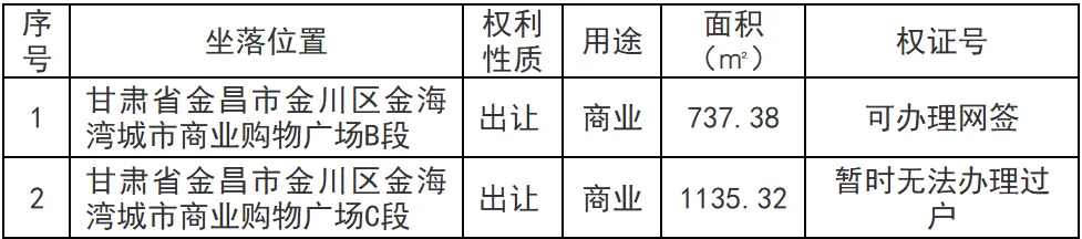 4.甘肃省金昌市金川区金海湾城市商业购物广场B段、C段2处商业用房转让推介公告项目