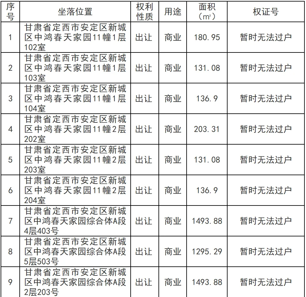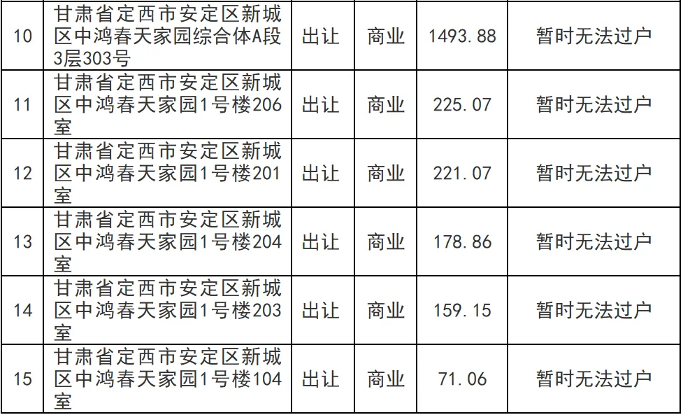 5.定西市安定区新城区中鸿春天家园15间商业用房转让项目