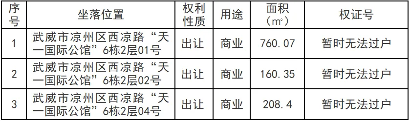 7.武威市凉州区西凉路“天一国际公馆”6栋2层3间商业用房转让项目