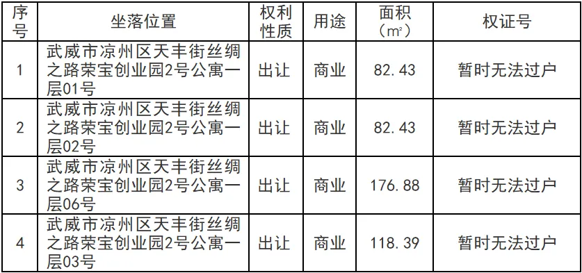 9.武威市凉州区天丰街丝绸之路荣宝创业园2号公寓一层4间商业用房转让项目