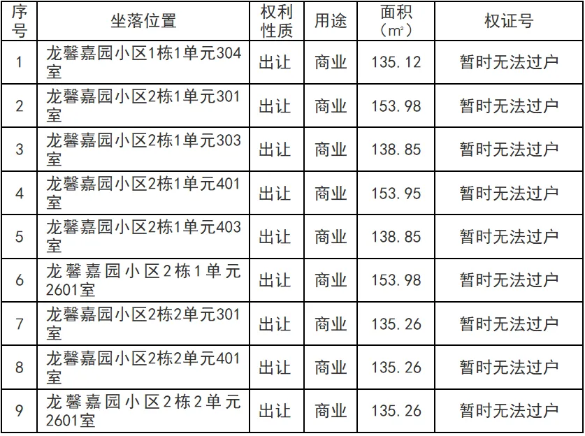 15.武威市华藏寺镇延禧北路、滨河西路西侧交汇处龙馨嘉园小区9套商业住房转让项目