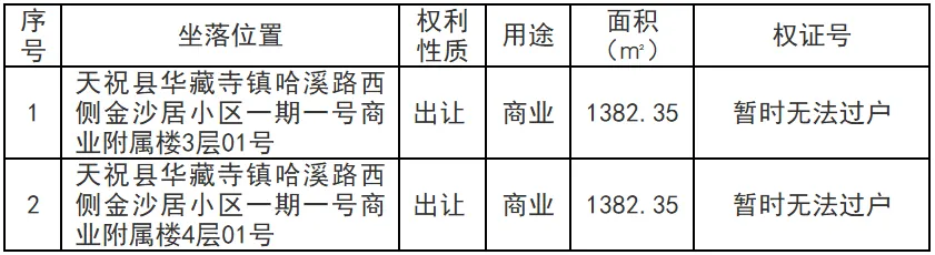 18.天祝县华藏寺镇哈溪路西侧金沙居小区一期一号商业附属楼2间商业用房转让项目