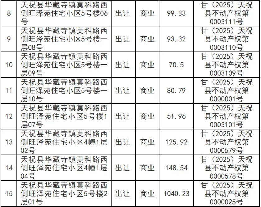 22.武威市天祝县华藏寺镇莫科路西侧旺泽苑住宅小区15间商业用房转让项目