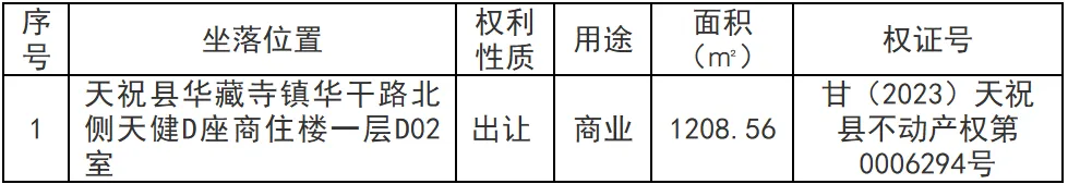 25.武威市天祝县华藏寺镇华干路北侧天健D座商住楼一层D02室商业用房转让项目