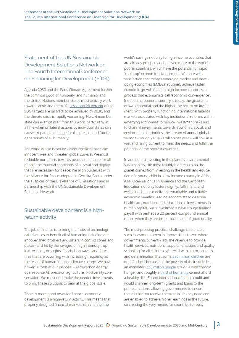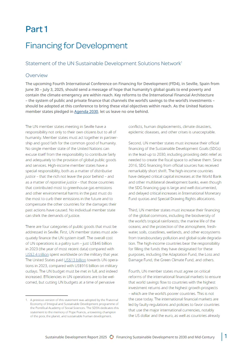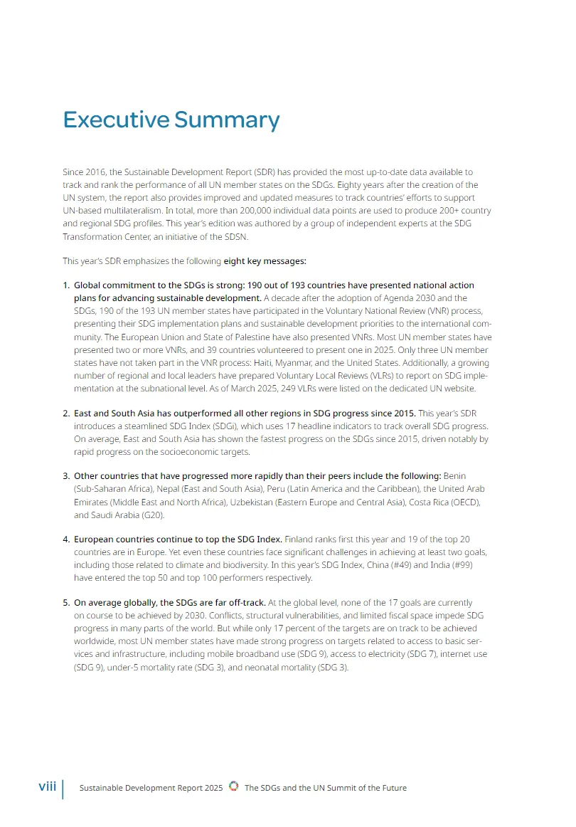 《2025年可持续发展报告》由联合国可持续发展解决方案网络发布,旨在评估全球在实现可持续发展目标(SDGs)方面的进展。
