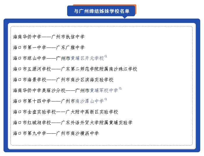 像海南华侨中学对接的是广州执信中学,海口一中找的是广雅中学,广州的这两所学校都是百年名校,执信中学是“广东基础教育的一面旗帜”,广雅中学是全国中学教育的标杆。