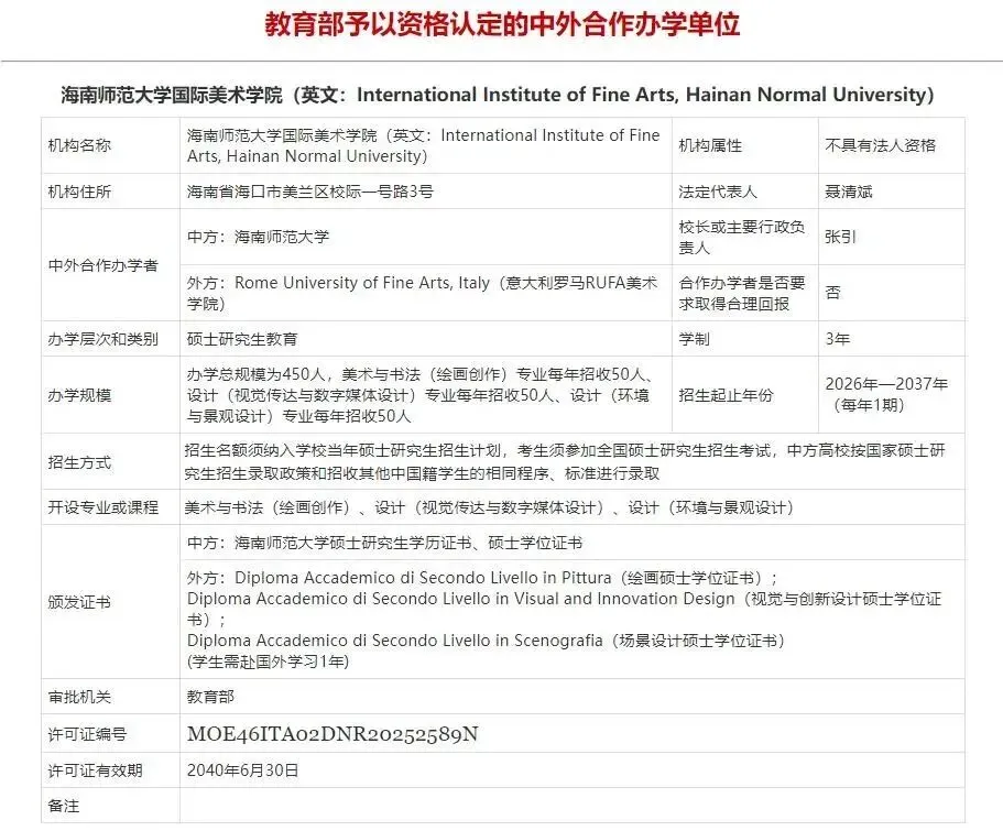 高等教育方面也有动作,海南师范大学跟意大利的罗马RUFA美术学院合作,办了个国际美术学院。这可是海南省首个中意合作、海南师范大学首个中外合作办学机构,以后学生还能拿双学籍。