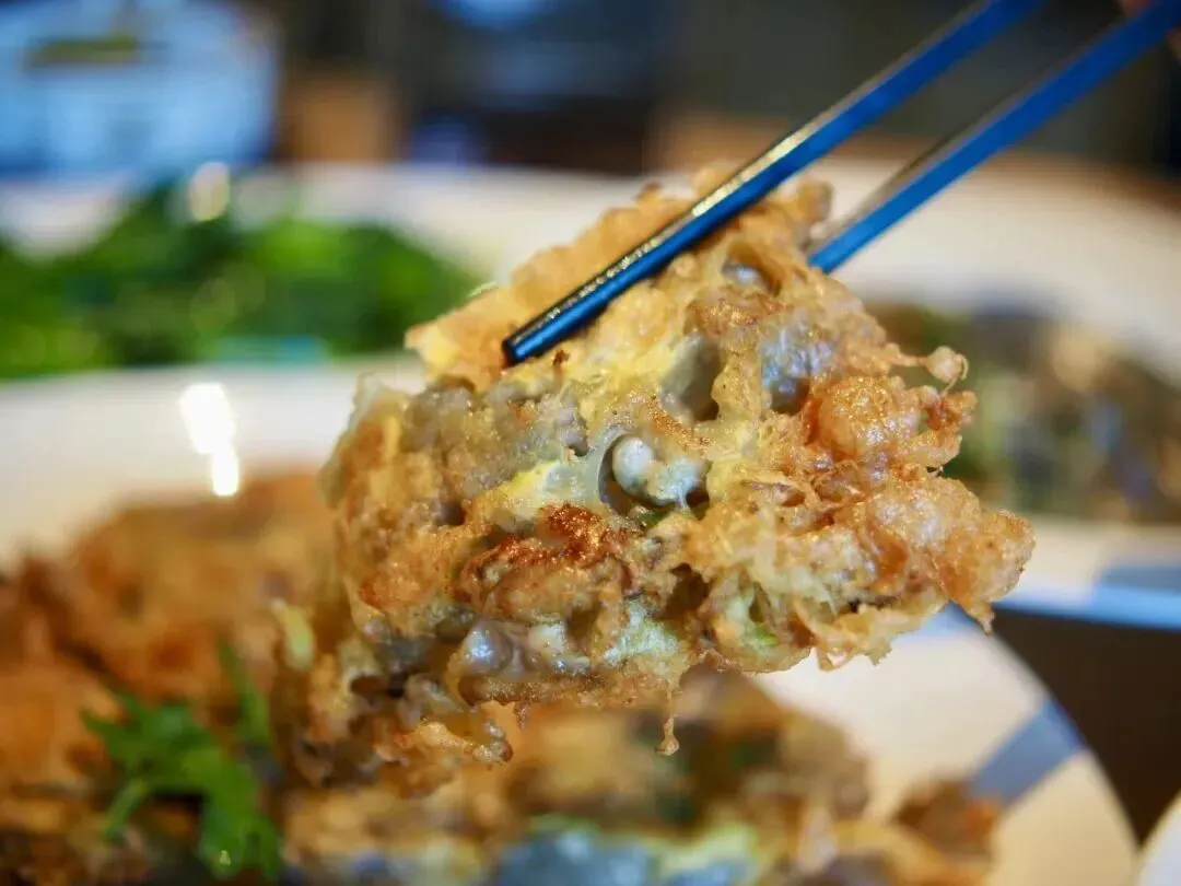 煎得金黄香脆的柔滑蛋液包裹着颗颗饱满、鲜嫩多汁的蚝仔,空口吃也是享受。