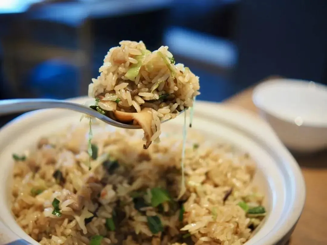 滋滋作响的“碳水炸弹”——土豆、香菇、虾肉、卷心菜、香菇与煸透的猪肉粒焖在一起,猪肉粒有种近乎油渣的香气。