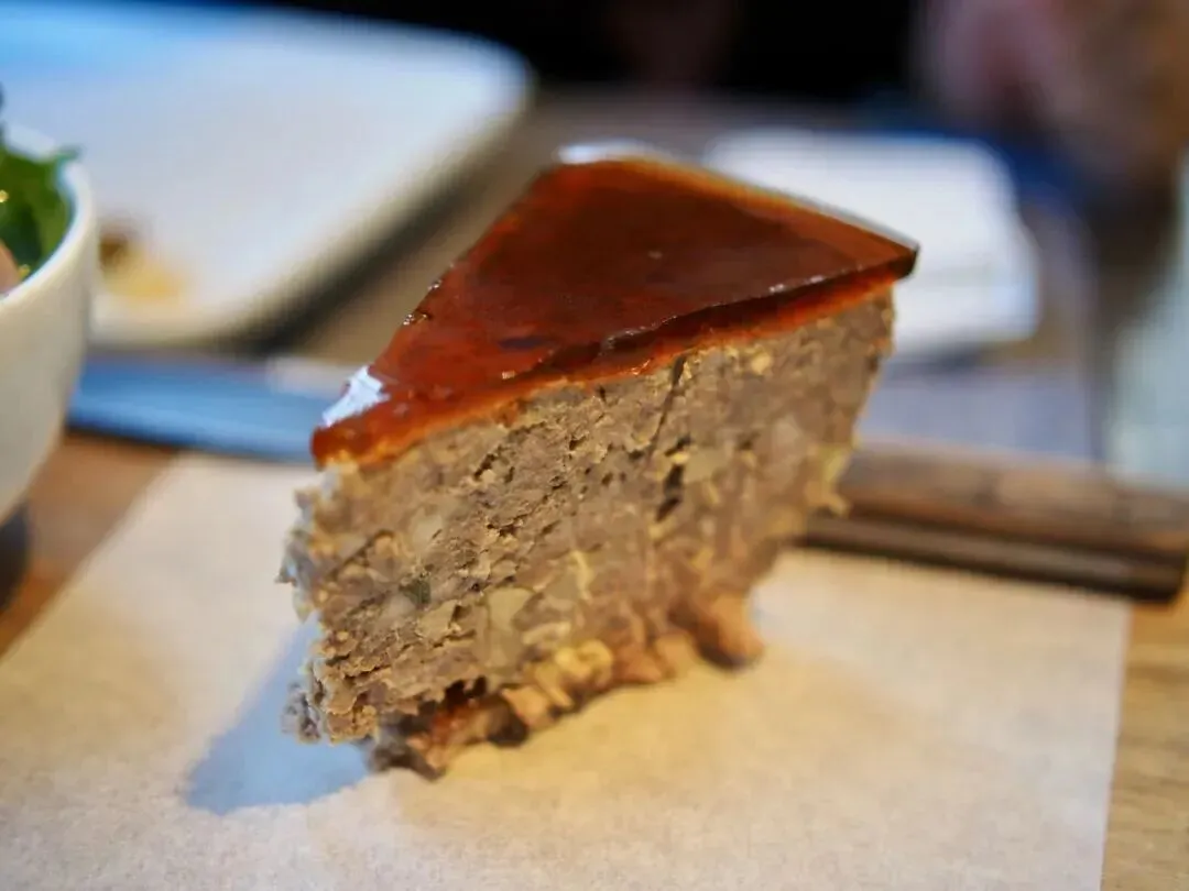 鸭肝、鹅肝、猪肉等多种食材的鲜味浓缩于这一块肉派中,细腻丝滑,完全不腥,我个人更爱空口吃,配上烟熏火燎的吐司吃也很妙(笑)。