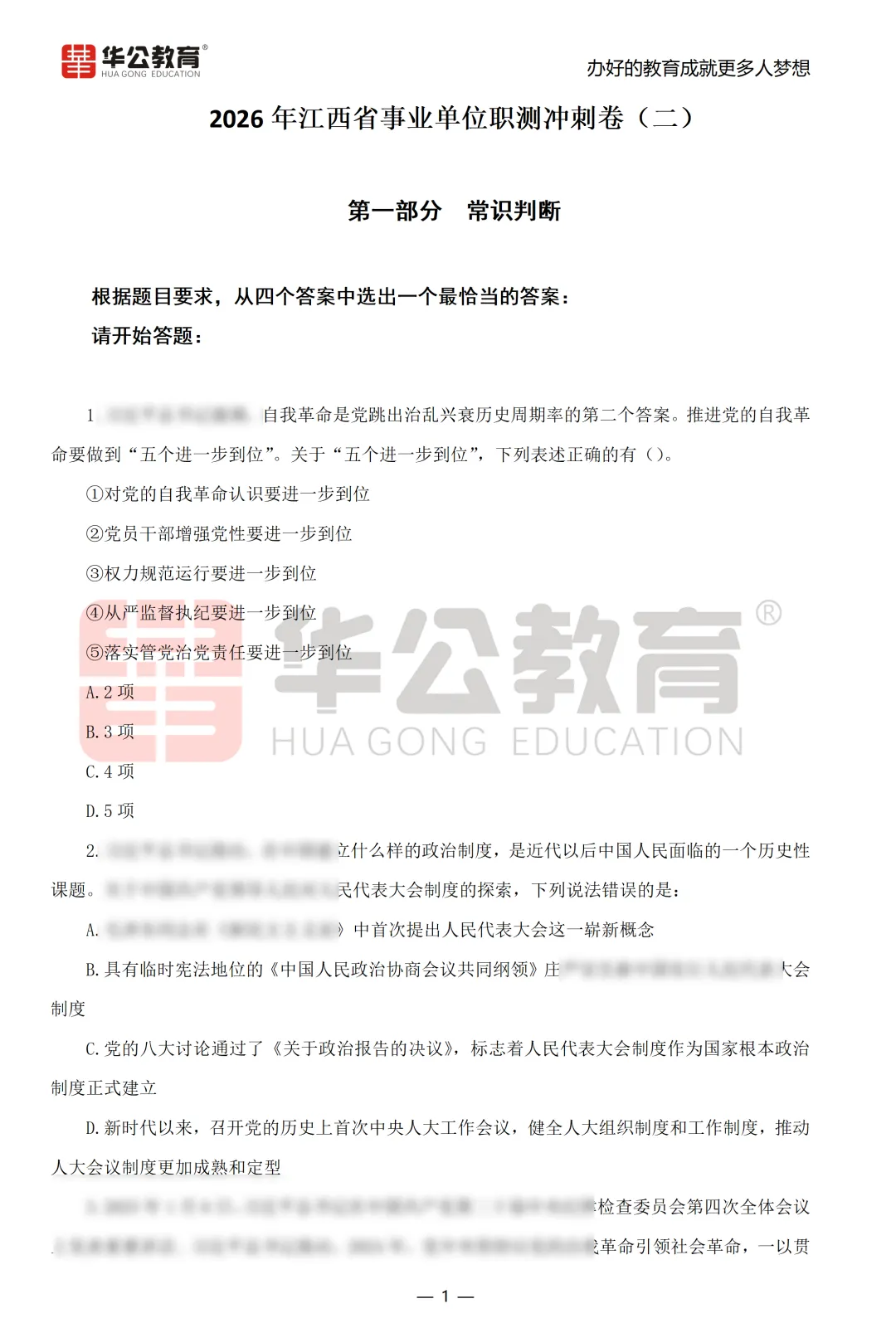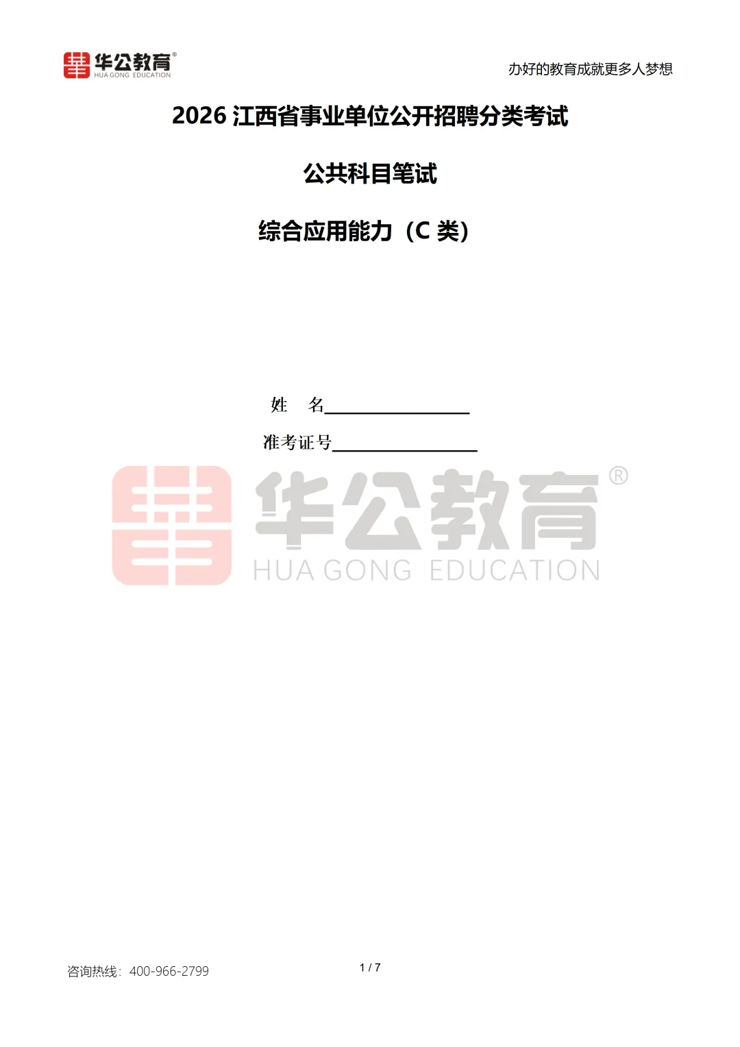 【免费下载】江西事业单位ABC类考前冲刺卷!
