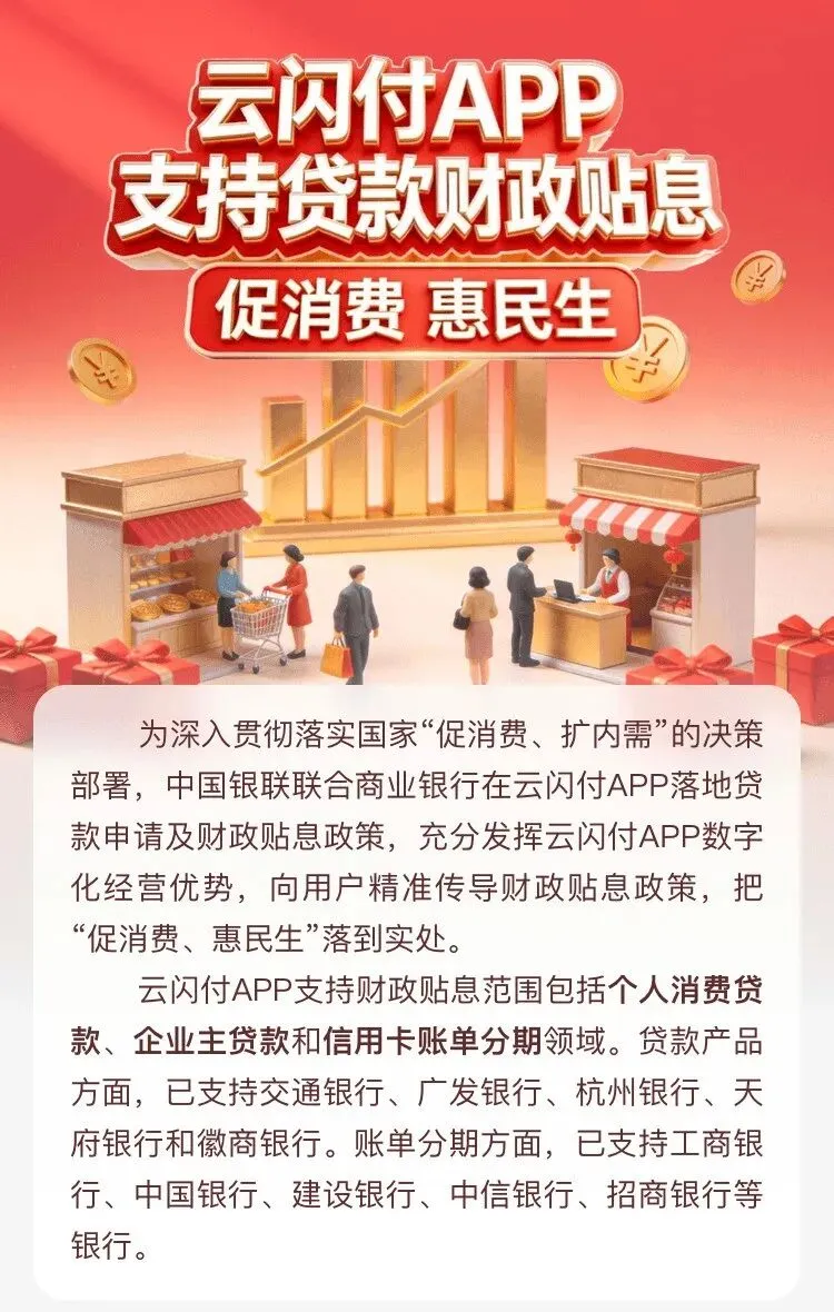 惠民生 促消费,云闪付APP支持贷款财政贴息