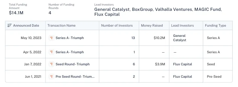 截止 2023年 Triumph 的融资情况|图片来源:Crunchbase