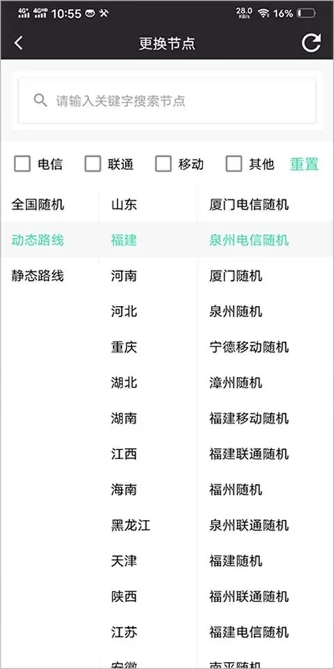 2、选择自己喜欢的城市ip;双击节点可直接连接